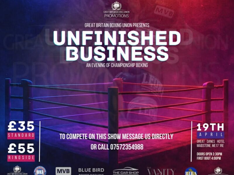 Unfinished Business 19th April 2026 3:30 pm - 9:55 pm Locations: Great Danes Hotel Organizers: GBBU Promotions View Event